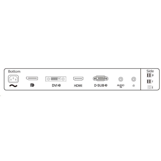 - Kabel D-Sub, kabel HDMI, kabel DP, kabel USB, audio kabel, napájecí kabel