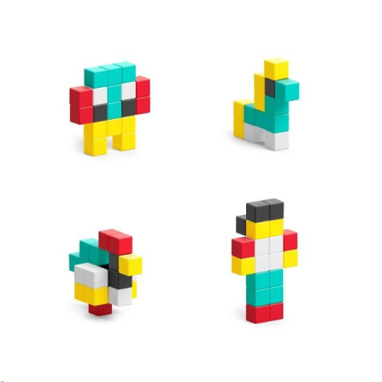 Každý z magnetických bloků PIXIO je kostka o velikosti 8x8x8mm. Uvnitř je 6 malých magnetů vážících méně než 1 g. Chytrý a unikátní design magnetů dávají nekonečné možnosti skládaní obrazců – neexistuje špatný postup, jak stavět a tvořit, protože jde jenom o kreativitu, představivost a šikovnost tvůrce. Všechny modely PIXIO jsou mezi sebou kompatibilní.