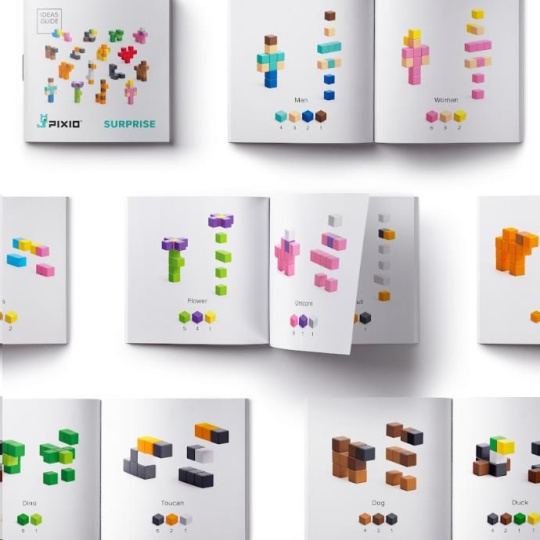 Každý z magnetických bloků PIXIO je kostka o velikosti 8x8x8mm. Uvnitř je 6 malých magnetů vážících méně než 1 g. Chytrý a unikátní design magnetů dávají nekonečné možnosti skládaní obrazců – neexistuje špatný postup, jak stavět a tvořit, protože jde jenom o kreativitu, představivost a šikovnost tvůrce. Všechny modely PIXIO jsou mezi sebou kompatibilní.