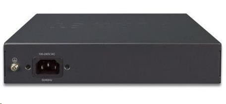 EEE ethernet IEEE 802.3az. Automatická detekce 10/100Mbps a zkřížení kabelů. Bez ventilátorů, napájení vnitřní AC 230V.