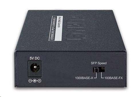 Skrze vestavěný DIP přepínač na zadním panelu lze GT-1205A nakonfigurovat pro podporu 100BASE-FX nebo 1000BASE-X SFP modulů. Pomocí SFP modulů PLANET série MFB/MGB lze GT-1205A optickým vedením propojit na vzdálenost až 2 km při použití multimode vlákna nebo až 120 km při použití singlemode nebo WDM vlákna.