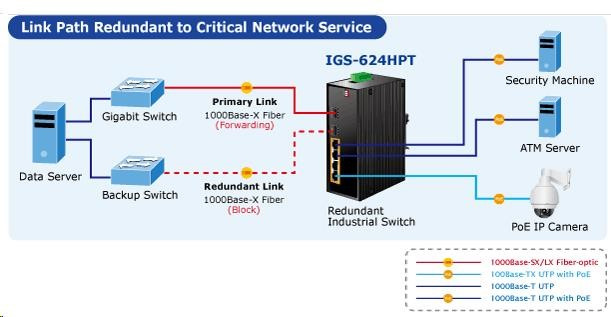 Planet IGS-624HPT, PoE switch 4x 1000Base-T, 2x SFP 100/1000Base-X, 802.3at 120W, DIN,IP30, -40 až +75st.C