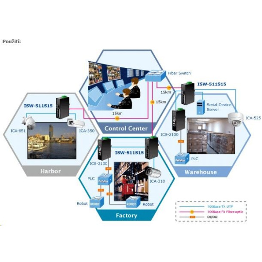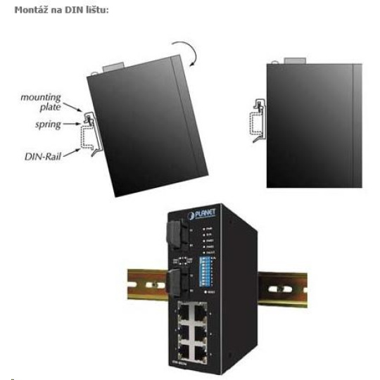 Planet ISW-511, 4x 10/100Base-TX+ 1x 100FX 2km, MM, DIN, IP30  Přepínače pro průmyslový Ethernet jsou určeny do náročných provozních podmínek s velkým rozsahem pracovních teplot, nejistým napájením a častými otřesy. Přepínače řady ISW se snadno instalují na standardní DIN lištu nebo přímo na zeď a umožňují nasazení dobře známé Ethernetové technologie i v průmyslovém prostředí. Stejně tak jsou vhodné pro instalace do venkovně umístěných skříní s velkým kolísáním pracovních teplot (typicky bezdrátové a MAN ISP aplikace).  Vlastnosti: - 4 porty 100Base-TX, Switching, Full Duplex (100/200 Mbps), Auto-Negotiation (10/100 Mbps), automatická detekce přímý/křížený kabel na každém portu - 1 port 100Base-FX, full duplex, SC konektory, multimodemode, pro 50/125um a 62,5/125um vlákno, dosah 2km, vlnová délka 1300nm, zdvih min. 15,5dB (vysílací výkon max. -14dBm, min. -19dBm, přijímací citlivost -34,5dBm) - 1M buffer, propustnost sběrnice 1Gbps - pole LED indikátorů pro diagnostiku provozu - instalace na DIN lištu, montážní díl součástí - instalace na zeď, montážní díl součástí - krytí IP30, skříň celohliníková - napájení: 12-48V DC redundantní, připojení možné ze dvou různých zdrojů (nejsou součástí balení) - ochrana proti přepólování, připojení napájení na svorkovnici, umístění na spodním panelu (nepřekáží při montáži na zeď) - QoS prioritizace provozu dle portu, ToS, 802.1p - zařízení je odolné proti pádu (IEC-60068-2-32) z výšky 75cm na všechny dopadové části - zařízení je odolné proti vibracím (IEC-60068-2-6) 10-500-10Hz, 4x g, 0,5oct/min - zařízení je odolné proti přetížení krátkodobému zrychlení 50g, dlouhodobému 4g, (IEC-60068-2-27) - EMI/EMS, elektromagnetická kompatibilita a slučitelnost dle CE EN-6100-4-2,3,4,5,6 - elektrická bezpečnost dle CE EN-60950 - pracovní teplota -10 až 60 st. C, vlhkost do 95% - skladovací teplota -40 až 85 st. C - příkon 9,1W - rozměry 135 x 97 x 32 mm.