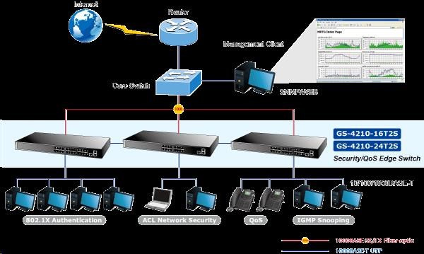 Planet switch GS-4210-24T2S, L2/L4, 24x 1000Base-T, 2x SFP, web, SNMP V3, VLAN, QOS, IPV6