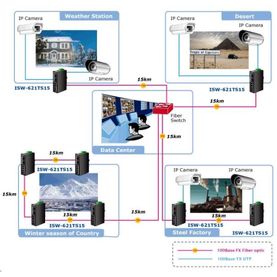 Planet switch ISW-621TS15, průmysl.verze 4x10/100+2x100BaseFX (SC) SM 15km, DIN, IP30, -40 až 75°C, 12-48V