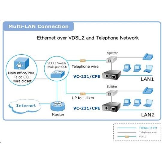 Planet VC-231, Eth. VDSL2 konvertor, 100Mbit, master/slave, RJ-11