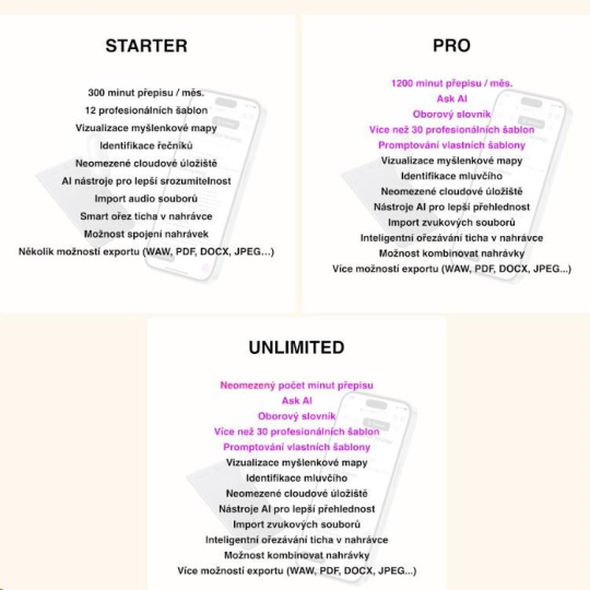 - Váš 3 v 1 asistent: Záznam, přepis, souhrn. 300 minut měsíčně zdarma