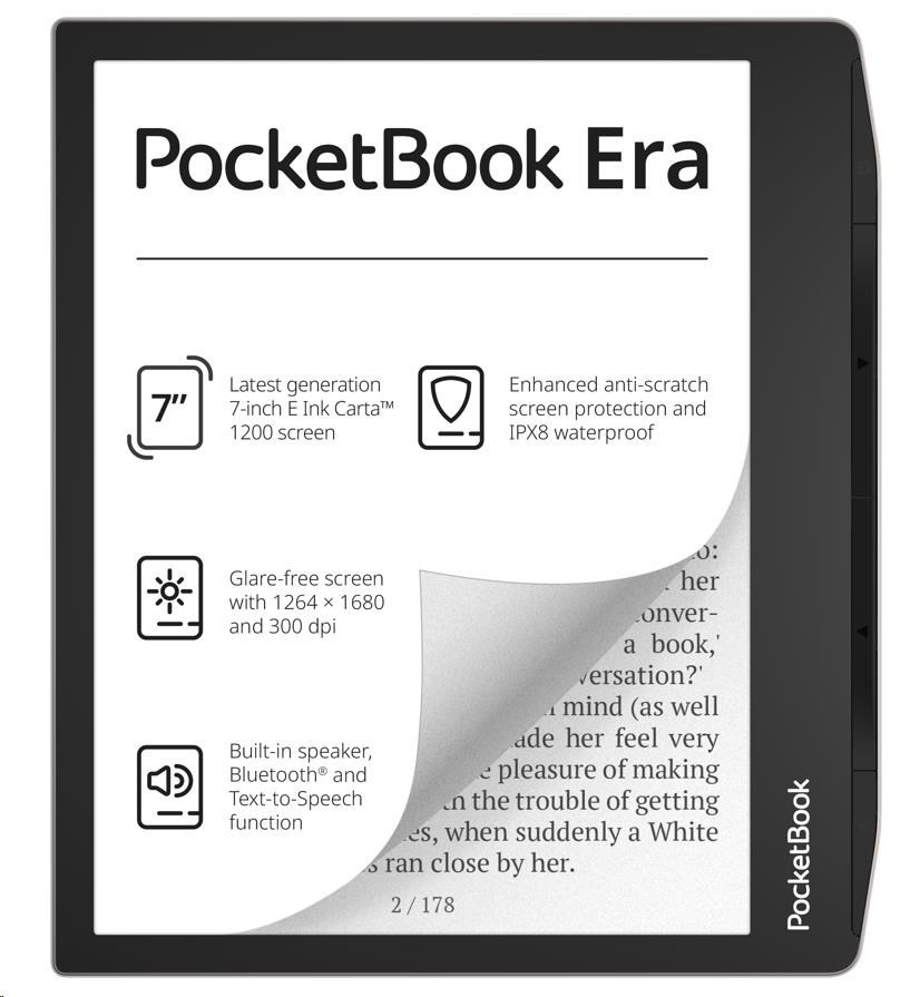 Samozřejmostí je vestavěný reproduktor, díky němuž můžete poslouchat audioknihy. Pocket Book Era umí také nahlas předčítat texty až v 26 jazycích. Prostřednictvím Bluetooth si k ní můžete připojit bezdrátová sluchátka a další praktické doplňky.
