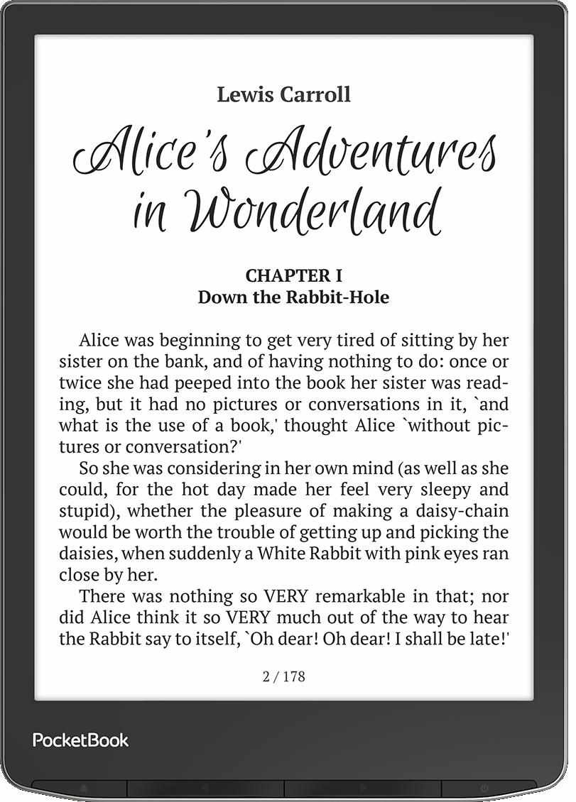 Tato funkce promění jakýkoli textový soubor v audioknihu: stačí dvě kliknutí a PocketBook InkPad 4 bude přirozeným hlasem přečítat jakoukoli knihu.