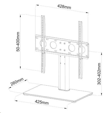 Elegantní podstavec na Tv 32-55", nastavení výšky, top kvalita, nosnost 40kg Kvalitní podstava na televizory a monitory s úhlopříčkou 32" až 55" a nosností 40kg. Podstavec o rozměrech 425mm x 260mm je vyroben z bezpečnostního skla v černém provedení o síle 8mm. Ostatní části jsou z litiny nebo ocely. Držák podporuje VESA standardy 100x100 až 400x400, má systém pro fixaci Tv. Výškové nastavení v rozmezí 302 až 402mm (po střed obrazovky). Systém pro vedení kabeláže, zabezpečovací lanko pro ukotvení k nábytku nebo ke zdi, instalační materiál. Vynikající kvalita za bezkonkurenční cenu. ErgoSolid Castor 2 - elegantní podstava na televizi nebo monitor 32 až 55 palců Technické údaje: nosnost 40kg podporuje VESA standardy 100x100 až 400x400 doporučujeme na televizory a monitory s úhlopříčkou 32" až 55" nastavení výšky 302mm až 402mm systém vedení kabeláže podstava z bezpečnostího skla o rozměrech 425mm x 260mm x 8mm fixace Tv na držák bezpečností lanko pro uchycení k nábytku nebo zdi elegantní design vynikající kvalita instalační materiál barevné provedení černé záruka 2 roky Bezpečností lanko pro uchycení k nábytku nebo ke zdi ErgoSolid Castor 2 Fixace Tv na držák podstavce ErgoSolid Castor 2 Televizní podstavec ErgoSolid Castor 2 podporuje VESA standardy: VESA 100x100 VESA 200x100 a 100x200 VESA 200x200 VESA 300x100 a 100x300 VESA 300x200 a 200x300 VESA 300x300 VESA 400x200 a 200x400 VESA 400x300 a 300x400 VESA 400x400.