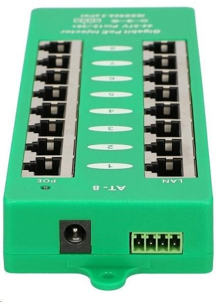 Aktivní POE injektor - 8x 1Gb/s, stíněný, 802.3af/at