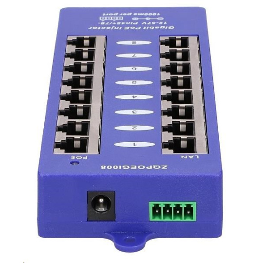 POE injektor pasivní - 8x 1 Gb/s, stíněný, svorkovnice