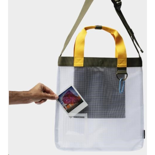 Vyznačuje se charakteristickými barvami Polaroidu a držákem, který umožňuje personalizaci pomocí fotografie Polaroid, takže je skutečně jedinečný. Ukažte svého rozkošného psa, nejnovější fotografii z dovolené nebo úžasnou krajinu, kterou jste vyfotili. Záleží jen na vás. Držák na polaroid Silná rukojeť a popruh na tělo Nastavitelný ramenní popruh Značka Polaroid Vnější strana z recyklovaného ripstopu Polyesterová podšívka Středové zapínání na patentky Upevnění karabinou Základní konstrukce ve tvaru T Černá taška ze 100% polyesteru Rozměry: D 360 mm x V 470 mm x H 15 mm..