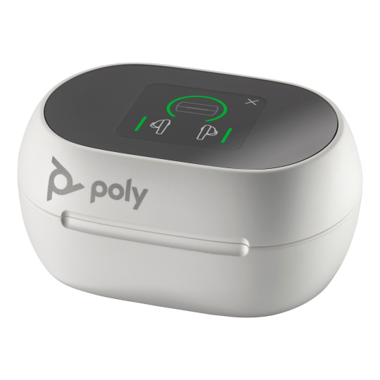 Bílé nabíjecí pouzdro Poly Voyager Free 60+ UC s dotykovou obrazovkou pro adaptér BT700 USB-A
