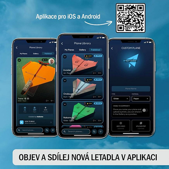Rychloupínací systém umožňuje experimentovat nejen s obyčejným papírem, ale i s lehkým kartonem, balzovým dřevem nebo pěnovými materiály. Palubní počítač navíc sám dorovnává drobné nepřesnosti ve skládání, takže i úplní začátečníci zažijí hladký let hned na první pokus.
