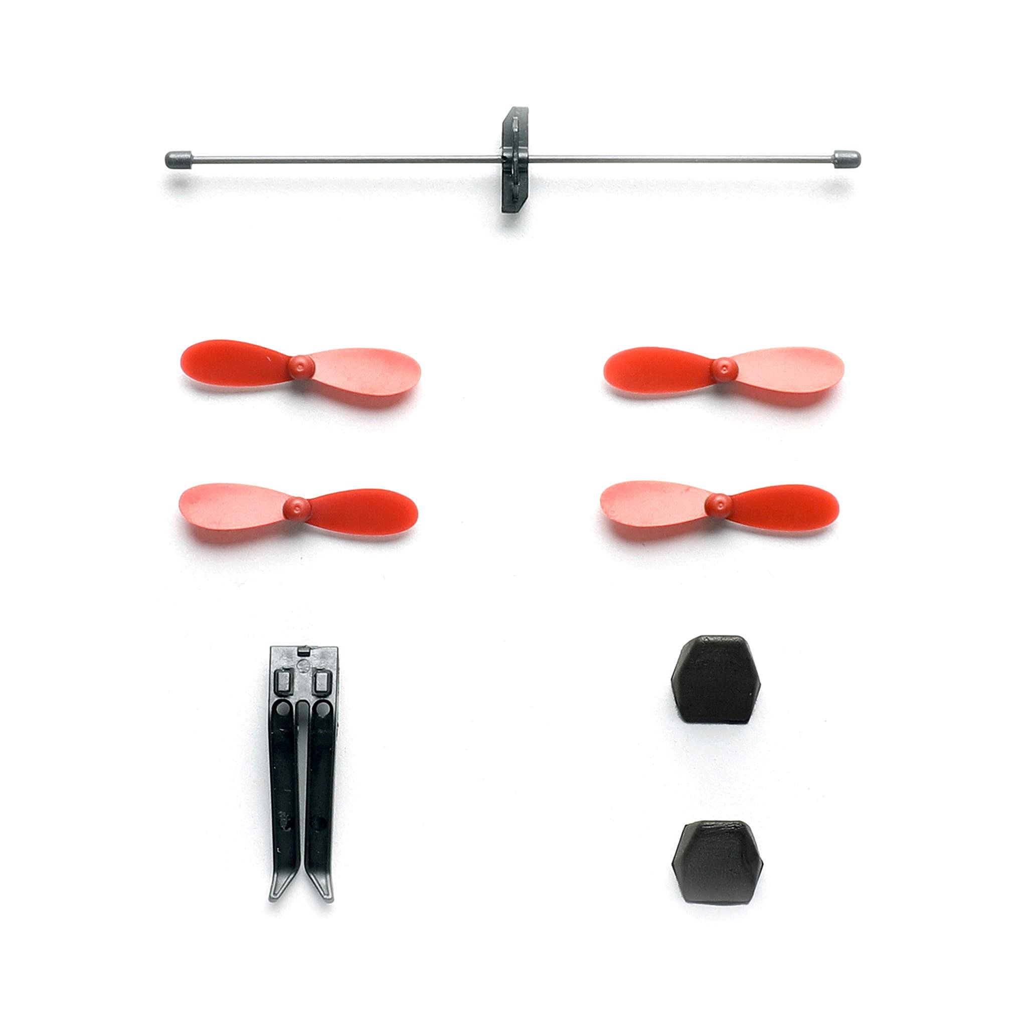 Celkově tak v balení dostáváte: 2× gumový nárazník, 2× sadu vrtulí (4 kusy celkem), 1× upínací klip a 1× středovou tyč. Nic dalšího k běžné údržbě v terénu nepotřebujete.