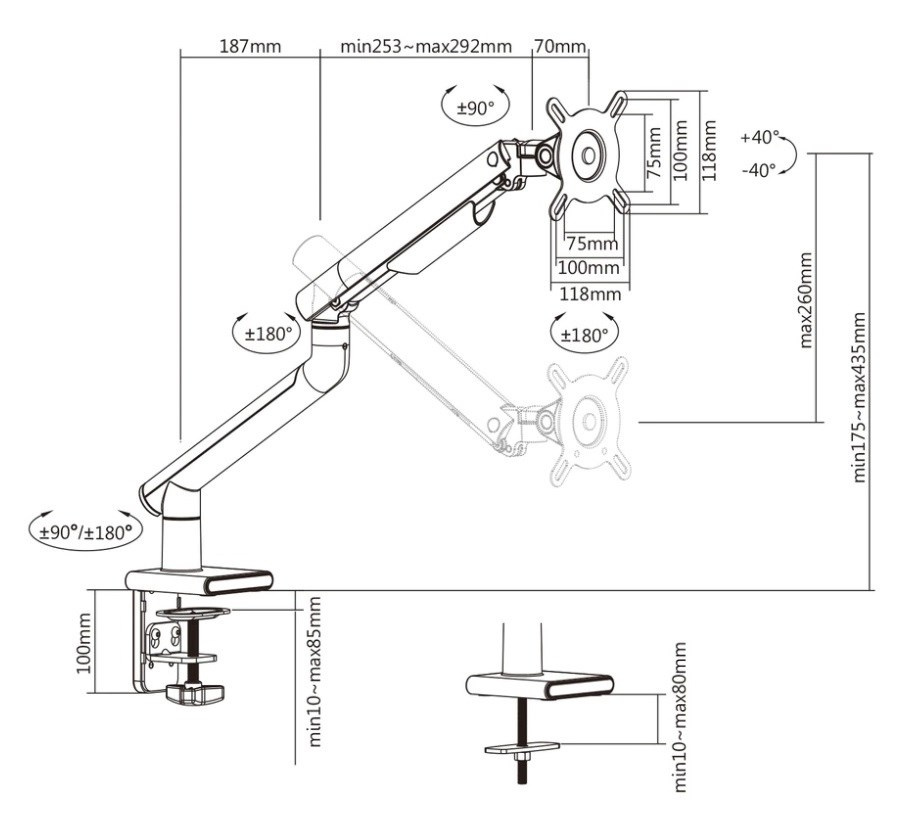 Prémiový stolní držák na monitor Fiber Mounts M4C37 Ergonomický polohovatelný držák na monitory 17-32", VESA 75x75 a 100x100, nastavení vzdálenosti monitoru od stolního uchycení, nastavení výšky, otáčení do stran, naklápění, funkce pivot, plynová pružina, nosnost 9kg, 2 stolové úchyty, vedení kabeláže, barva bílá Kancelářský držák prémiové kvality a krásného designového zpracování v bílé barvě se stříbrnými kryty. Držák poskytuje nejvyšší ergonomii - komplexní nastavitelnost: výškové polohování, nastavení vzdálenosti od stolního uchycení, otáčení do stran, naklápění, funkce pivot pro otočení obrazovky na šířku nebo na výšku. Balení obsahuje 2 typy uchycení na stolové desky: na okraje stolů nebo přes průchodku (1x otvor min. 10mm) kdekoli v prostoru stolu. Polohování je velmi snadné a rychlé, pozici monitoru můžete měnit dle potřeby x krát denně. Doporučujeme i velmi náročným zákazníkům nebo do kanceláří, kde chtějí poskytnout zaměstnancům skvělou ergonomii a pohodlí při práci, to vše navíc v krásném designovém provedení. Ergonomický držák monitoru v prémiové kvalitě Fiber Mounts M4C37 Technické údaje: nosnost 9kg plynová pružina s nastavením dle hmotnosti monitoru doporučená úhlopříčka monitoru 17-32" podpora VESA standardů 75x75 a 100x100 výškové polohování 260mm minimální výška 175mm, maximální výška 435mm vzdálenost monitoru od stolního uchycení 0-549mm funkce pivot pro nastavení monitoru na šířku nebo na výšku uchycení na stolové desky o průměru 10-80mm 2 typy úchytů na stoly: svěrák na okraj stolu a šroubovice na průchodku (otvor min. 10mm) systém pro vedení kabeláže barevné provedení bílé, krytky stříbrné záruka 5 let Prémiový designový držák na monitory ergonomický do kanceláří Fiber Mounts M4C37 Držák M4C37 podporuje VESA standardy: VESA 75x75 VESA 100x100 možnost zakoupit včetně rozšíření na VESA 200x100 a 100x200 možnost zakoupit včetně rozšíření na VESA 200x200.