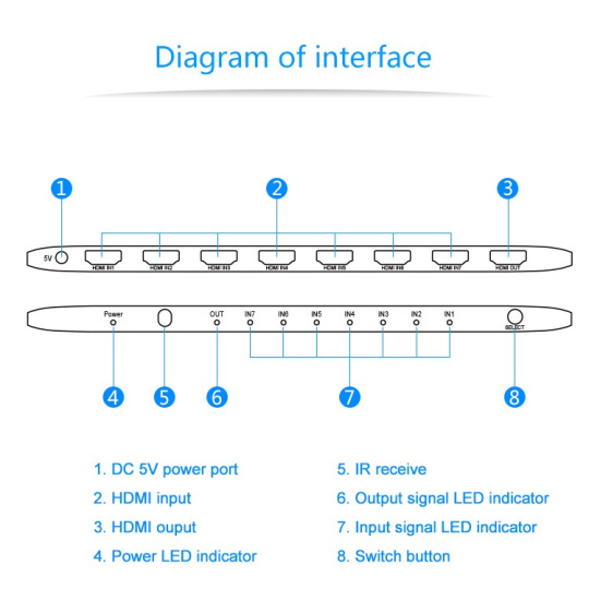 PremiumCord 4K@60hz HDMI switch 7:1 plastový s dálkovým ovladačem