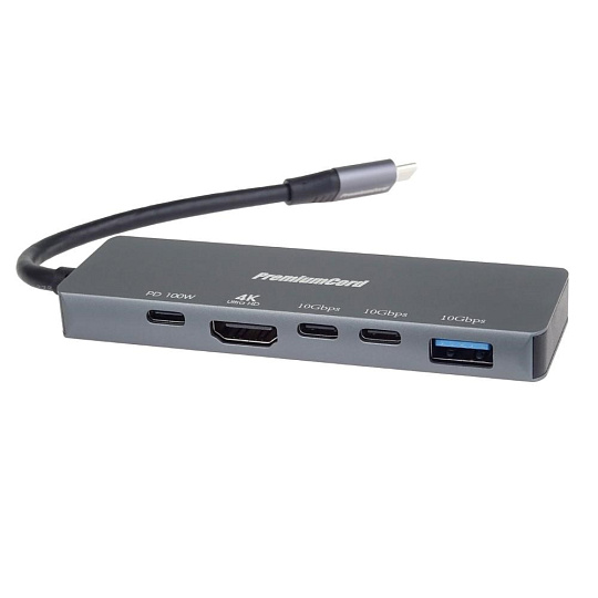 PremiumCord Adaptér USB-C na 4K@60Hz HDMI + 10G USB3.2 A + 10G 2x USB-C + PD