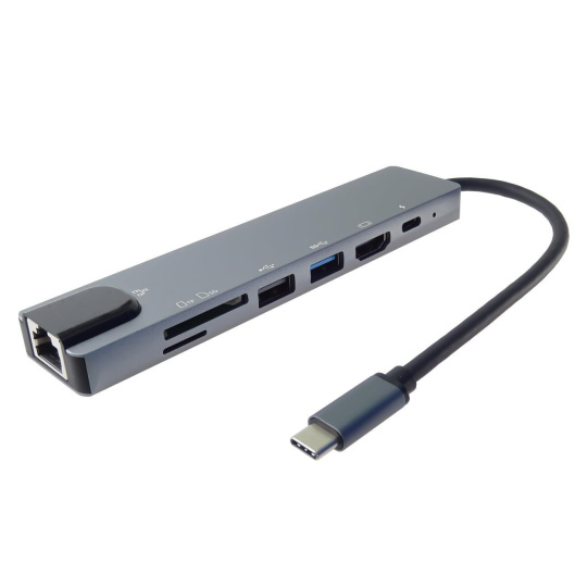 - Výstupní konektor: HDMI female + USB3.0 female + USB2.0 female + PD (power delivery) + čtečka karet SD/TF + RJ45 konektor na ethernet 10/100Mbps