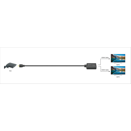 | Návod k zapojení: | 1) Vstup HDMI splitteru zapojte HDMI kabelem do zdroje signálu a výstup zapojte do zobrazovací jednotky nebo monitoru. Pokud se obraz po zapojení rozbočovače nezobrazí ihned po zapojení, vyčkejte cca 30s než dojde k rozpoznání HDMI signálu. |