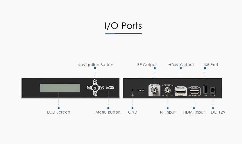 Slouží k převodu nekomprimovaného obrazového a zvukového signálu v digitálním formátu připojeného na rozhraní HDMI na komprimovaný video signál MPEG-2 FULL HD (H.264) a jeho modulaci na výstupní DVB-T kanál.