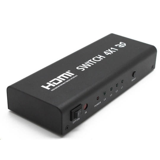 4 HDMI zařízení sdílí 1 HDMI výstupní zařízení (obrazovku). Výběr zařízení tlačítkem nebo dálkovým ovládáním.Audio výstup pro zesilovač nebo audio systém.