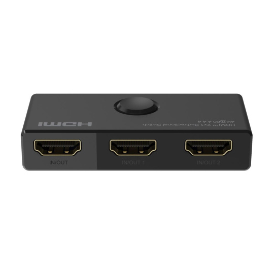 - Obousměrný 2x1 / 1x2 Přepínač HDMI lze použít dvěma různými způsoby: připojit 2 vstupní zdroje s 1 výstupním displejem nebo 1 vstupní zdroj se 2 displeji (funguje pouze na 1 obrazovce, nikoli současně).