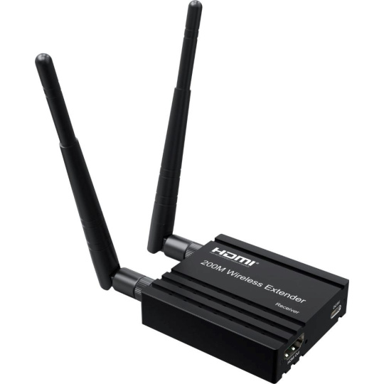 - Bezdrátový vysílač a přijímač signálu HDMI umožňuje připojit HDMI monitor nebo promítačku na vzdálenost až 200m na otevřeném prostranství.