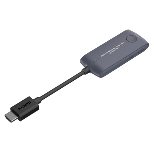 - Přijímač představuje malý dongl, který se zasune přímo do HDMI konektoru monitoru nebo projektoru. Přijímač je napájen pomocí USB kabelu z USB portu.