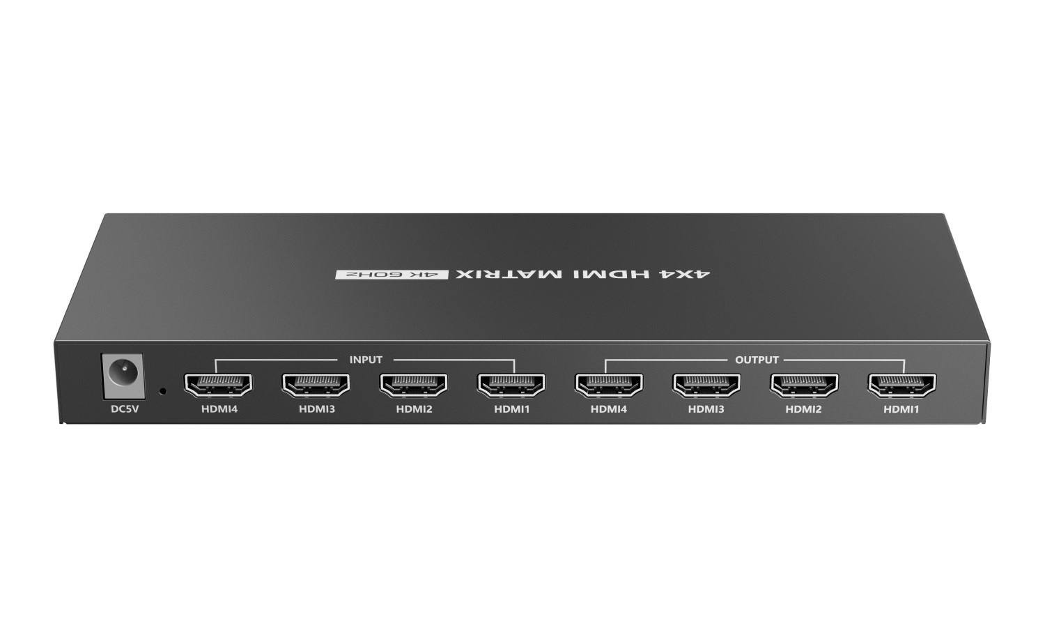 Matrix provedení 4 vstupy a 4 výstupy, umožní připojit až 4 vstupy na 4 výstupy a libovolně přepínat.