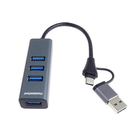PremiumCord Hub 5G SuperSpeed, USB-C a USB-A na 4x USB-A 3.2 Gen 1