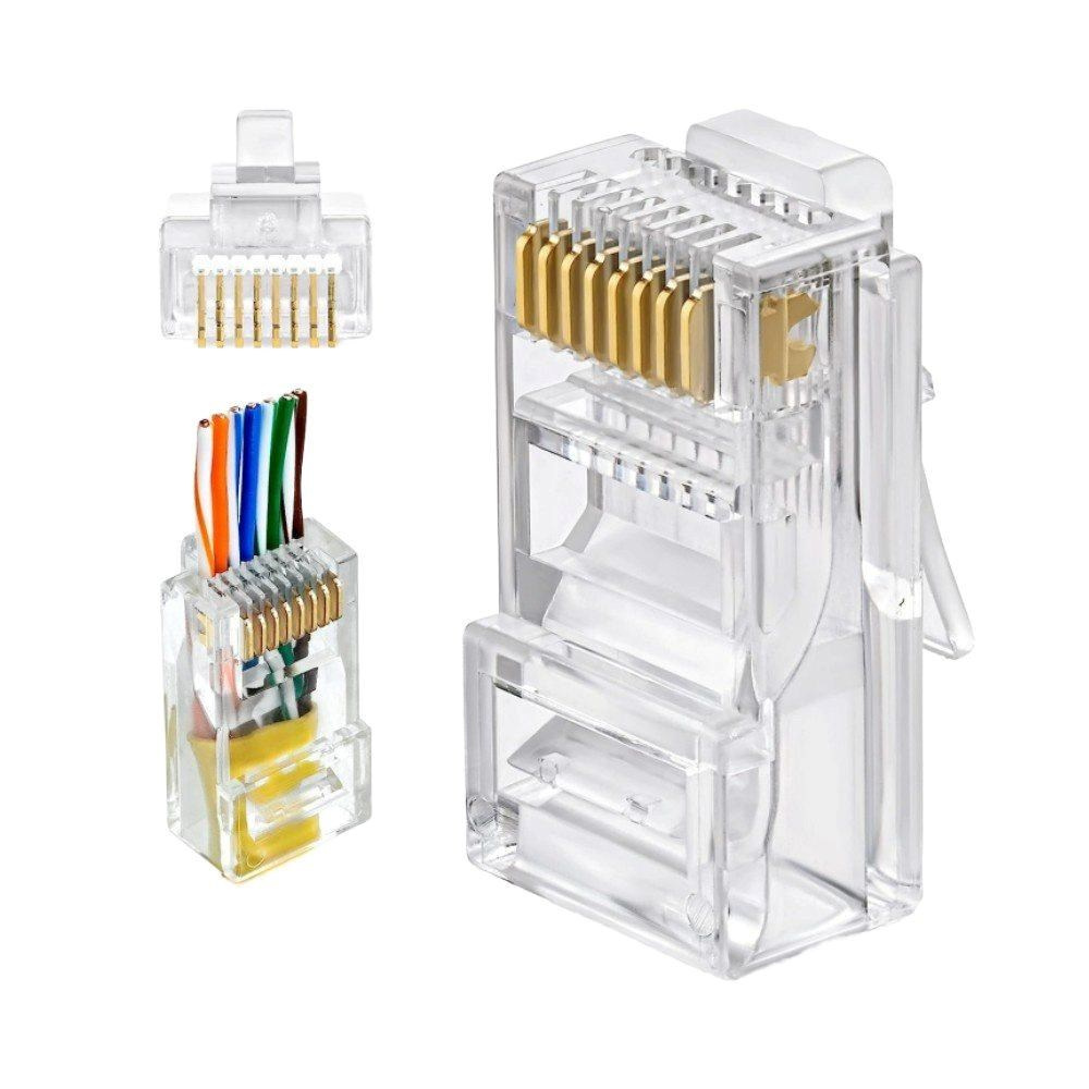 PremiumCord modulární RJ45 konektor (8P8C) pro kabely kategorie Cat6 je navržen pro čisté a spolehlivé zakončení síťových kabelů. Tento průchozí konektor usnadňuje krimpování: vodiče procházejí skrz konektor, takže lze snadno ověřit jejich pořadí a zajistit správný kontakt. Transparentní tělo umožňuje vizuální kontrolu zapojení vodičů, což minimalizuje chyby při instalaci.