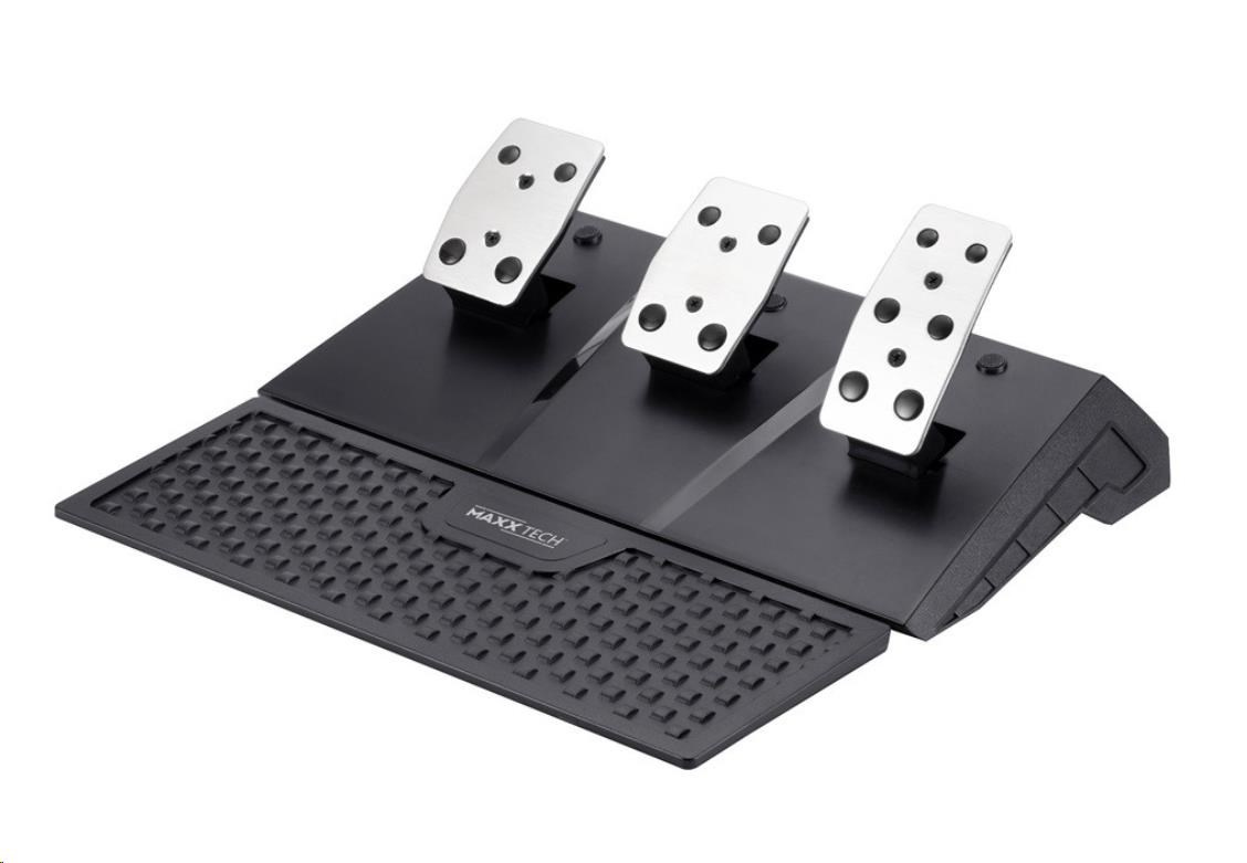 Obsahuje volant se zpětnou vazbou, sadu 3 pedálů a řadicí páku.