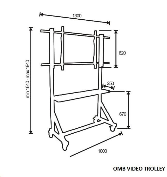 Profesionální vozík/stojan držák na televizory 55-100", pojezdová kolečka s brzdou, OMB VIDEO TROLLEY