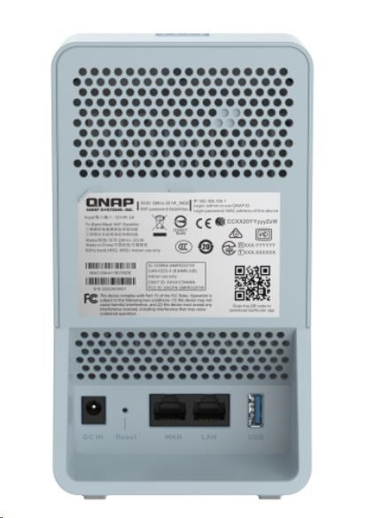 Pouze pro připojení USB dongle úložiště pro FTP službu na routeruBluetooth Verze 5 Zisk antény Bluetooth 2,3dBi Tlačítko Reset, WPS Napájení 12 V DC Spotřeba energie 24 W Rozměry 68x100x175,5 mm Hmotnost 0,44 kg Hmotnost balení 1,11 kg Provozní teplota 0°C ~ +40°C Provozní vlhkost 5 až 95 % bez kondenzace Certifikace JATE / CE / FCC / BSMI / NCC / IC / SRRC / VCCI / RCM / OFCA Wi-Fi Mesh ✓ (se třemi pásmy) Řešení QNAP SD-WAN, QuWAN ✓