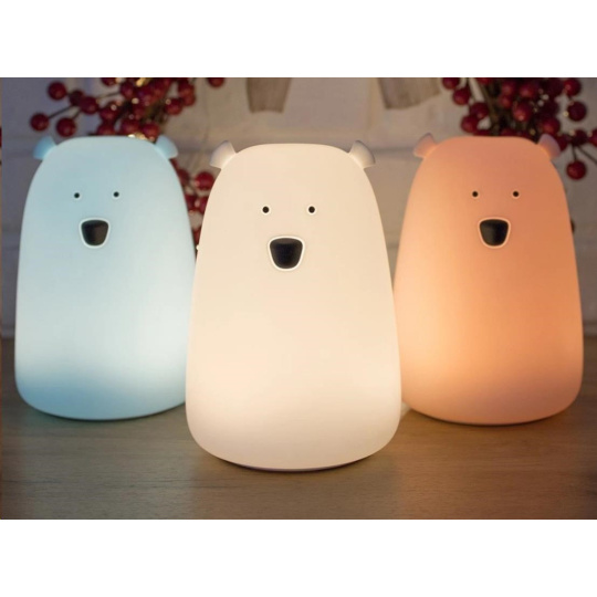 je vyrobená z příjemného a měkkého silikonu. Díky možnému výběru ze tří barevných provedení je skvělou volbou jak do holčičího, tak klučičího pokojíčku. Tento roztomilý kamarád bude svým příjemným světlem dělat vašim dětem společnost při večerním usínání, ale klidně i chvíli po něm. V případě, že medvídka zapomenete vypnout, sám se po 2 hodinách svícení automaticky vypne. Děti si svítícího medvídka natolik oblíbí, že jej bude chtít brát s sebou i na dovolenou či víkendový pobyt. Lampička je určena ke svícení, není hračkou.