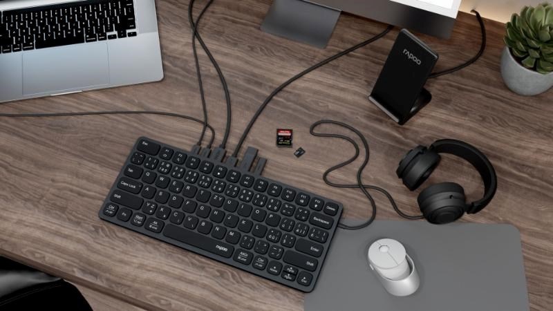 RAPOO Klávesnice UCK-6001 s 8v1 USB-C Hub, Drátová USB-C, CZ/SK, černá