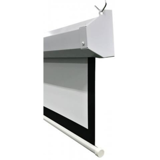 RC motorové plátno MOTOR CrystalLine 350x295cm, viditelná plocha 4:3, 167"/425, 340x255cm, bílý hranatý kovový tubus 15x365cm/40kg, uchycení na stěnu nebo strop, materiál BetaLux - bílá 0,52 tkanina 600g/m2 s 5cm černým okrajem a zadní stranou, Gain=1,0, pozorovací úhel 150°. Lux - bílý matný povrch pro maximálně věrný a kontrastní obraz při alespoň částečném zatemnění. PVC materiál s textilním základem vytváří rovnou plochu bez zvlnění ale v krajích může docházet k prohnutí - postupně mizí. Snadné uchycení na bocích plátna - stěna nebo strop. Přívodní elektrický kabel je na levé straně tubusu (při pohledu na upevněné plátno). Součástí dodávky je RC dálkový ovladač. Krabička RC přijímače (lze připevnit na stěnu) je na přívodním síťovém kabelu a na jejím boku jsou další možná tlačítka pro ovládání plátna..