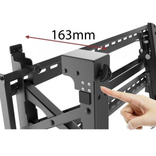 Nástěnný ocelový držák s výsuvným Pop-Out mechanizmem pro vytváření stěn z více Plasma nebo LCD TV s uhlopříčkou 45"- 70" (114-178cm) a hmotností maximálně 70kg. Uchycení VESA: 200x200, 300x300, 400x200, 400x400, 600x400. Popis: není vertikálně výklopný ani horizontálně otočný, proměnlivá vzdálenost od stěny 137-300mm, ochrana proti odcizení, materiál ocel, barva černá..