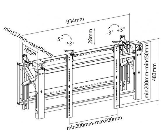 Nástěnný ocelový držák s výsuvným Pop-Out mechanizmem pro vytváření stěn z více Plasma nebo LCD TV s uhlopříčkou 45"- 70" (114-178cm) a hmotností maximálně 70kg. Uchycení VESA: 200x200, 300x300, 400x200, 400x400, 600x400. Popis: není vertikálně výklopný ani horizontálně otočný, proměnlivá vzdálenost od stěny 137-300mm, ochrana proti odcizení, materiál ocel, barva černá..
