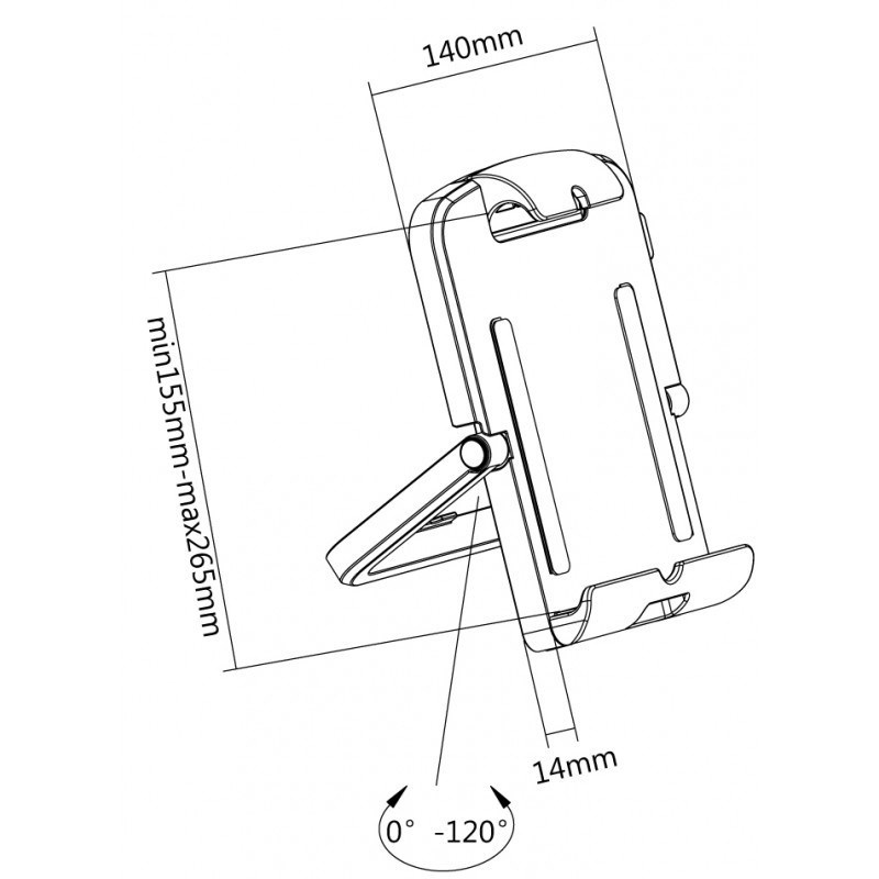 Stojánek pro tablety 7-11" v horizontální i vertikální poloze na zeď a kovovou plochu. 4x magnety a 2x vruty pro fixní uchycení, široká fixace tabletu ze dvou stran, lehké plastové provedení, šedý / bílý..