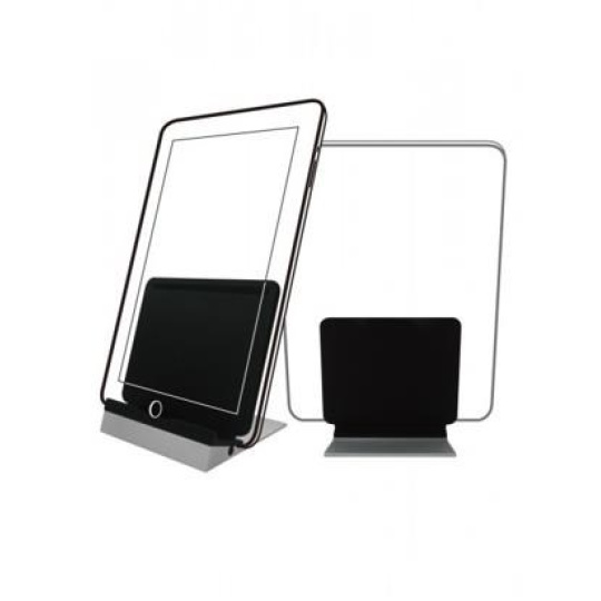 Stojánek pro tablety 7-11" v horizontální i vertikální poloze na stůl. Robustní hliníkové provedení ze dvou částí pro snadný transport a odolnost proti rozbití, opření tabletu na spodní hraně, stříbrný / černý..
