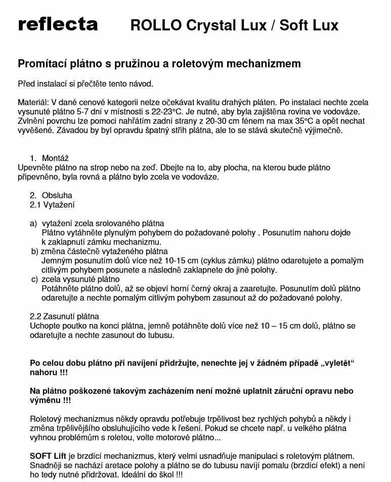 Stojanové skládací plátno Tripod CrystalLine 240x240cm, viditelná plocha 236x236cm, 1:1, 131"/334cm , černý kruhový kovový tubus 7x244cm/13kg, výška 263-308cm, materiál BetaLux - bílá 0,35 tkanina 300g/m2 s 2cm černým okrajem a zadní stranou, Gain=1,0, pozorovací úhel 120°. Lux - bílý matný povrch pro maximálně věrný a kontrastní obraz při alespoň částečném zatemnění. PVC materiál s textilním základem vytváří rovnou plochu bez zvlnění ale v krajích může docházet k prohnutí - postupně mizí. Pro časté přenášení doporučujeme použití vhodné velikosti transportního pouzdra Reflecta..