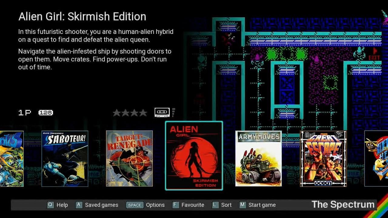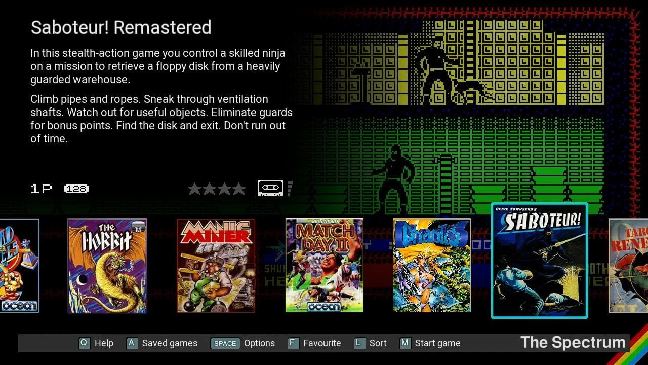 48 zabudovaných her včetně Manic Miner, The Hobbit a Head Over Heels