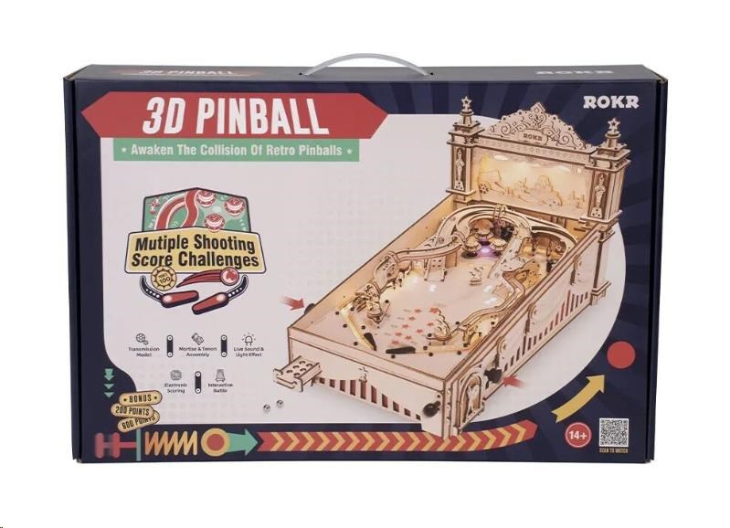 Tato skkládačka je nejen zábavný a kreativní projekt, ale také skvělý způsob, jak strávit čas s rodinou a přáteli. Jeho unikátní retro cirkusový design dodává pinballové hře nostalgickou přitažlivost. Je vhodná pro všechny kreativně založené osoby starší 14 let. Všechny přesné dílky do sebe lehce zapadnou, aby výsledek byl stabilní a odolný, a to bez použití lepidla. Skládačka je dodávána v nesloženém stavu, zabalena v krabici s detailním návodem k sestavení.