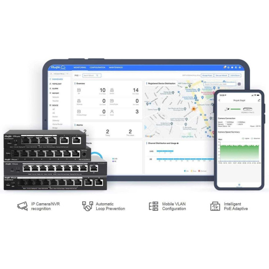 Registrace dealerské ceny: https://docs.google.com/forms/d/1sWwsswsbBk36eZx4CJrfl47qUvrORQyYz7kMjrt2f_c/prefill Popis produktu Inteligentní cloudově i přes webové rozhraní spravovatelný smart 19" rackmount switch RG-ES224GC od značky Ruijie, nabízí cenově efektivní řešení s 24 Gigabit LAN porty. Tento kompaktní přepínač je ideální pro síťové aplikace, které vyžadují výkon a spolehlivost. Co se výčtu funkcí týče, switch nabízí tichý chod bez ventilátorů, podporu až 16 VLAN, DHCP snooping, testování kabelu a ochranou proti zakruhování. Klíčové vlastnosti • 24× 10/100/1000 Mbps LAN porty • Kvalitní provedení, kovové šasi, 19" rackmount provedení • Bez venilátoru • Nízká spotřeba - max. 14 W • Správa přes webové rozhraní a cloud • Celoživotní správa na Ruijie Cloud kdykoli a kdekoli • Rozpoznávání IP kamer - jedinečná hodnota pro CCTV síť • Automatická prevence proti zakruhování Obsah balení • Zařízení • Úchyty do racku • Napájecí kabel Technické parametry Konektory a rozhraní Rychlost LAN:(24) 10/100/1000Mbps Napájení Typ napájení:Ze sítě (230V) Max. spotřeba energie [W]:14 Napájení přes konektor/svorkovnici:230V AC Fyzické charakteristiky Provedení:Rackmount Ventilátory:Bez ventilátoru Šasi:Kovové Tlačítka:Reset Provozní teplota [°C]:0 až 50 Šířka [mm]:440 Výška [mm]:44 Hloubka [mm]:165 Obecné Rychlost přepínání [Gbps]:48 Tabulka MAC adres:8000 Rychlost předávání paketů [Mpps]:35,7 Software Web management:Ano Management:Webové rozhraní, Ruijie cloud Funkce:VLAN, DHCP snooping Výchozí IP adresa:10.44.77.200 Výchozí jméno a heslo:Nastavuje se při prvním spuštění.