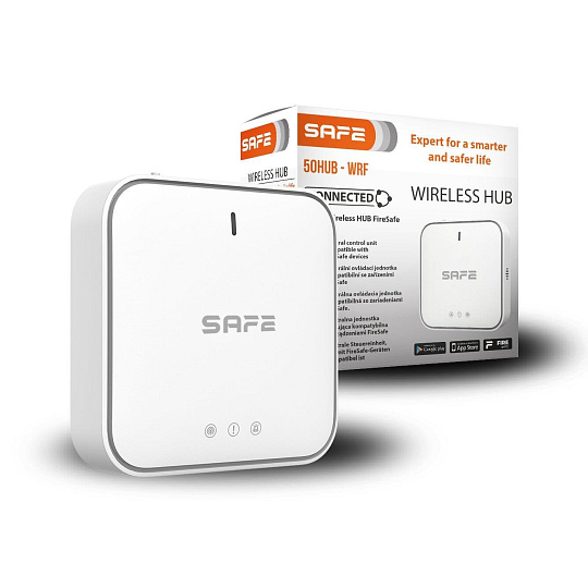 Inteligentní centrální ovládací jednotka SAFE 50HUB – WRF je klíčovým prvkem požárního zabezpečovacího systému FireSAFE. Pomocí technologie CONNECTED, umožňuje připojení všech bezpečnostních zařízení FireSAFE, monitoruje jejich činnost a v případě zjištění nebezpečí okamžitě informuje uživatele systému na jeho mobilním zařízení prostřednictvím bezplatné mobilní aplikace.