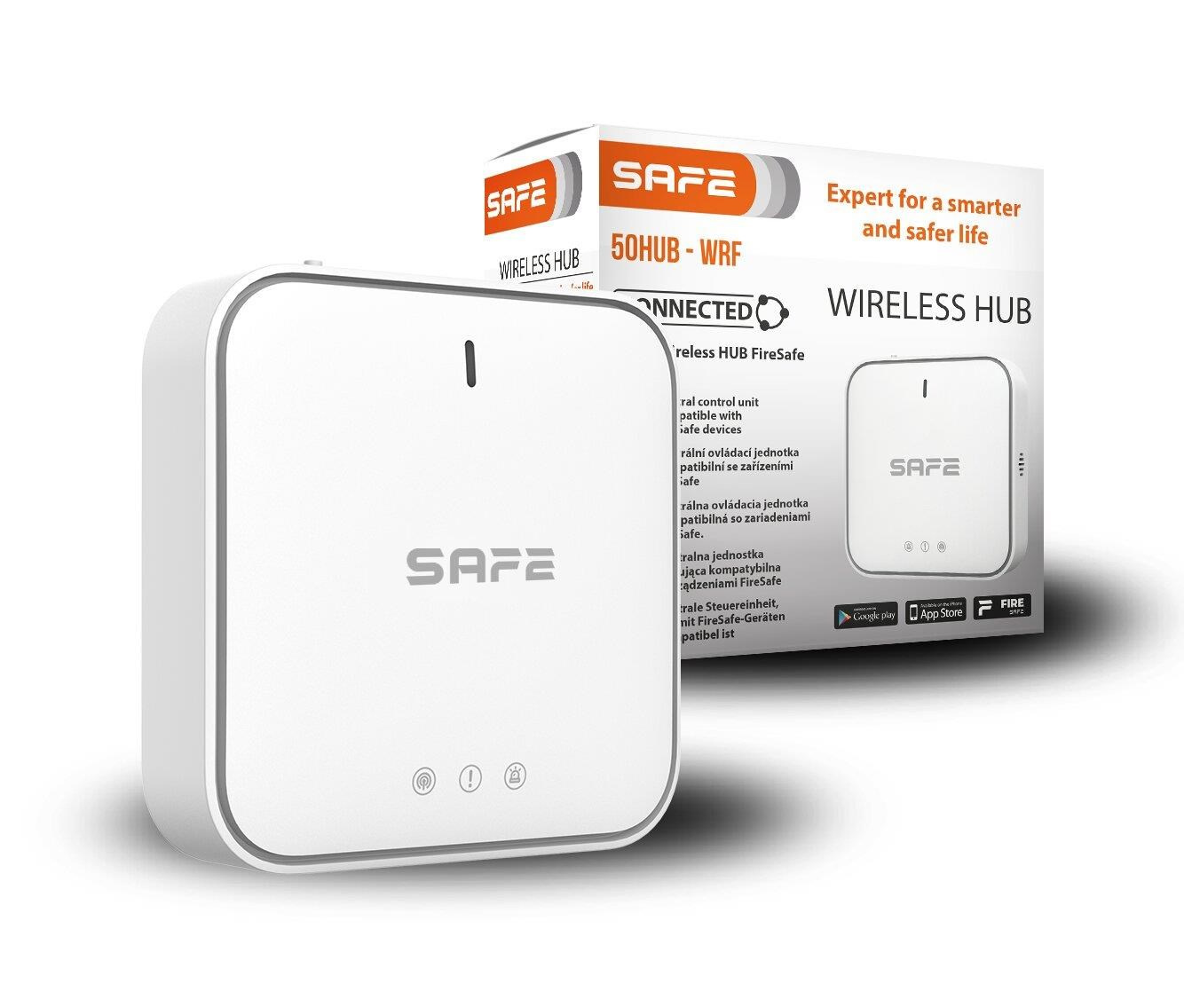 Inteligentní centrální ovládací jednotka SAFE 50HUB – WRF je klíčovým prvkem požárního zabezpečovacího systému FireSAFE. Pomocí technologie CONNECTED, umožňuje připojení všech bezpečnostních zařízení FireSAFE, monitoruje jejich činnost a v případě zjištění nebezpečí okamžitě informuje uživatele systému na jeho mobilním zařízení prostřednictvím bezplatné mobilní aplikace.