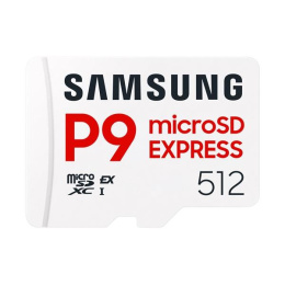 Samsung P9 Express je špičková microSDXC paměťová karta s velkou kapacitou 512 GB, určená pro široké spektrum zařízení – od mobilních telefonů a tabletů až po drony, akční kamery, notebooky a herní konzole.